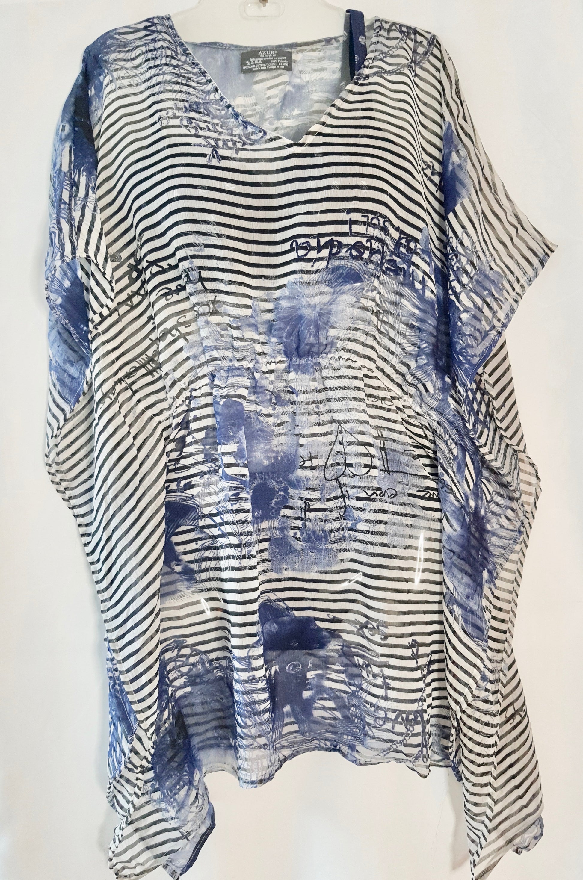 Swim Cover Up. Nautical Blue and White Floral Stripe