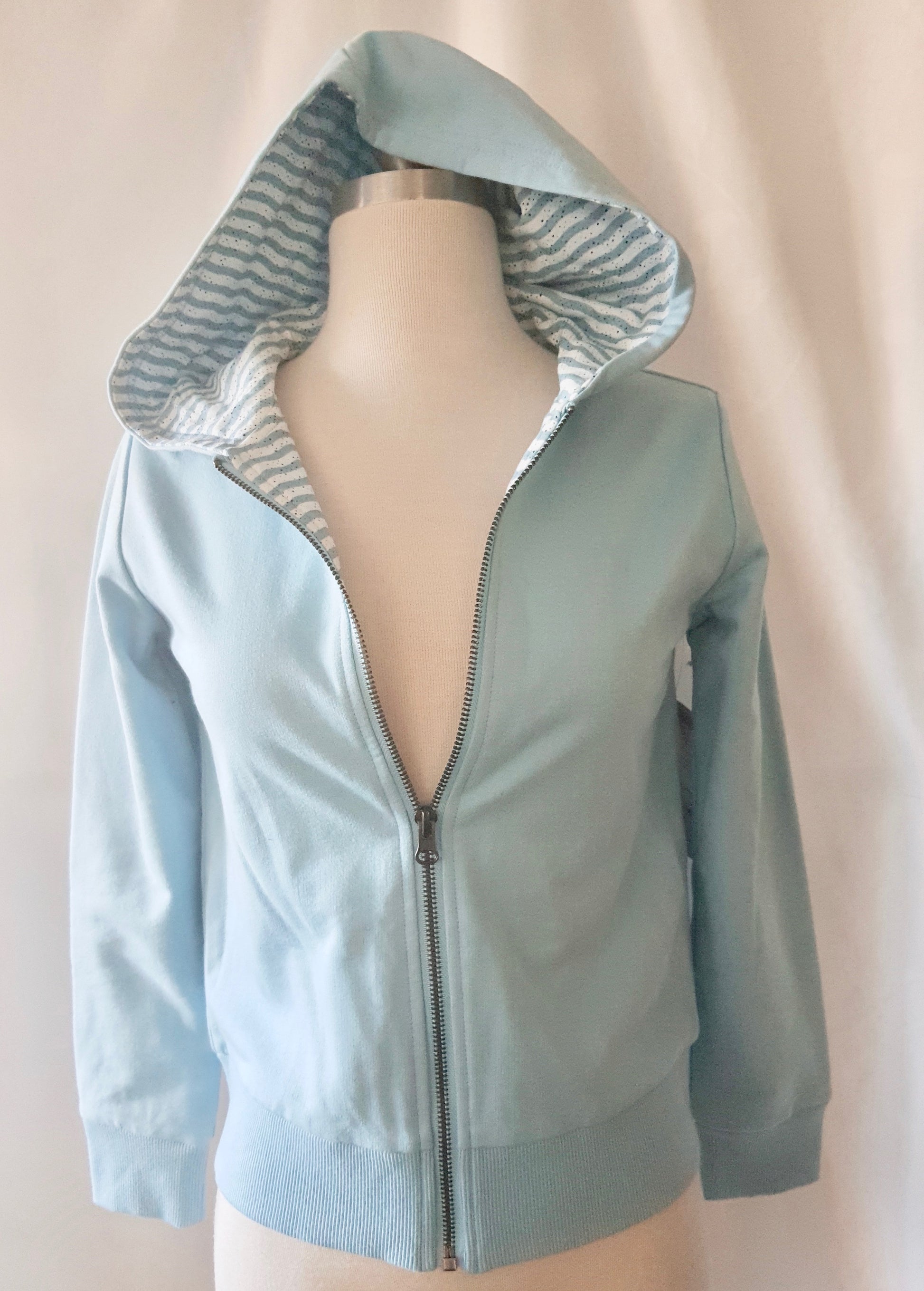 Stripped Lined, Long Sleeve, Zip Front Hoody, 100% Cotton